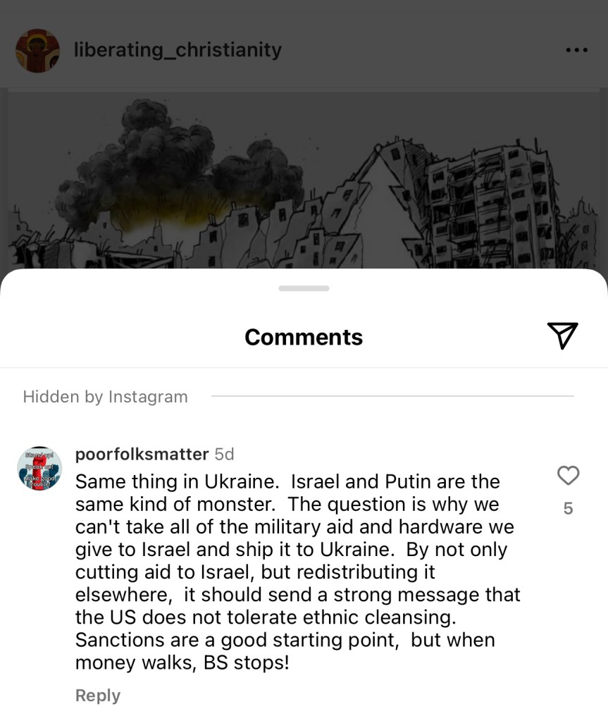 All these things… seem to simply serve to delegitimize the Jewish people’s continuing Covenant with G-d and repeat the argument that our Covenant has been superseded by Jesus and Christianity. The „Christ under the rubble“ posts have in part picked up dangerous Christ-killer tropes that, in the history of christianity have led to the demonization, persecution, and killing of Jews just as the blood libel myths have led to pogroms. The State of Israel often serves as the personified Jew, if it is not Jews directly that are demonized – the lecture of comment sections is from saddening to sickening, and not all the people who post these things are strangers. What a feeling when one sees friends and acquaintances, or your doctor post and like such things!