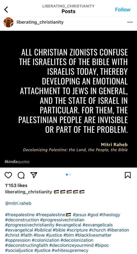Ateek, born 8 years after the 1929 Hebron massacre in Beisan/Beth She’an, (as well as Raheb) have participated in the elaboration of the Kairos Palestine document. This document has been criticized both by the Simon Wiesenthal Center as well as the Central Conference of American Rabbis, saying that it rewrote history, ignored Jewish roots and presence in Israel for thousands of years and employed replacement theology (saying that the Covenant between G-d and the Jewish people has been superseded by Jesus and Christianity) that denied legitimacy of Judaism and Jews. As such, it rejects the rejects the very notion of a Jewish State – and this is probably what is meant with a „Zionist interpretation of the Bible“ – a continuity between biblical Israel and the Jewish people and the land of Israel, as well as G-d’s promises to Israel and the Jewish people. Those are elements that can be found in today’s Pro-Palestinian activism: denying the links between Jews and their ancestral homeland, and even stating that Palestinians would be the true descendants of the ancient Israelites, as well as rehashes of the Khazar theory.