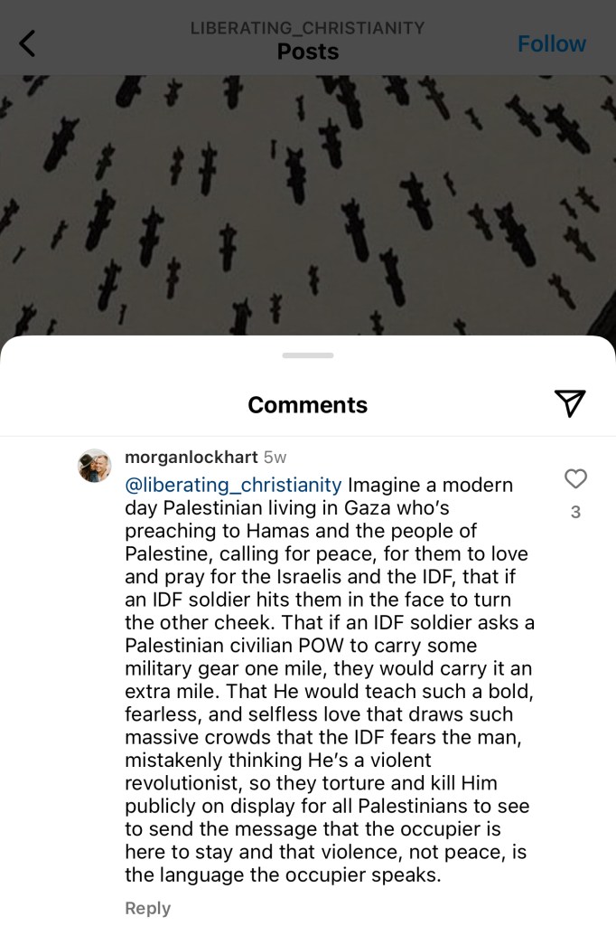 From that point of view, I wouldn’t have been particularly bothered if some of the statements about „Jesus the Palestinian“ hadn’t slipped into anti-Semitism. However, some of the posts were hair-raising and fit quite seamlessly into the good old tradition of other anti-Semitic statements: Jesus would have been born a Palestinian, exposed to child-murdering Jews, later killed by Jews as an adult – same old, same old accusation of deicide (can’t anyone invent something new?) and that this would somehow match the present-day existence of Palestinians who are exposed to genocide by the „fascist colonial state of Israel“, which again murders children full of bloodlust. It’s not difficult to recognize the well-known anti-Semitic myths here in thinly veiled new packaging of course.