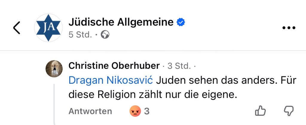 Unter den Artikeln der Jüdischen Allgemeinen richtete sich die Kritik ausschließlich dagegen, dass Juden über jüdische Menschen berichten. Nicht gegen den Inhalt, nicht gegen Fehler, nicht gegen mangelndes Mitgefühl – sondern allein gegen die Existenz einer jüdischen Perspektive. Daraus wurde dann der alte Vorwurf konstruiert, Juden würden sich „nur um Juden kümmern“, alle anderen seien ihnen egal.