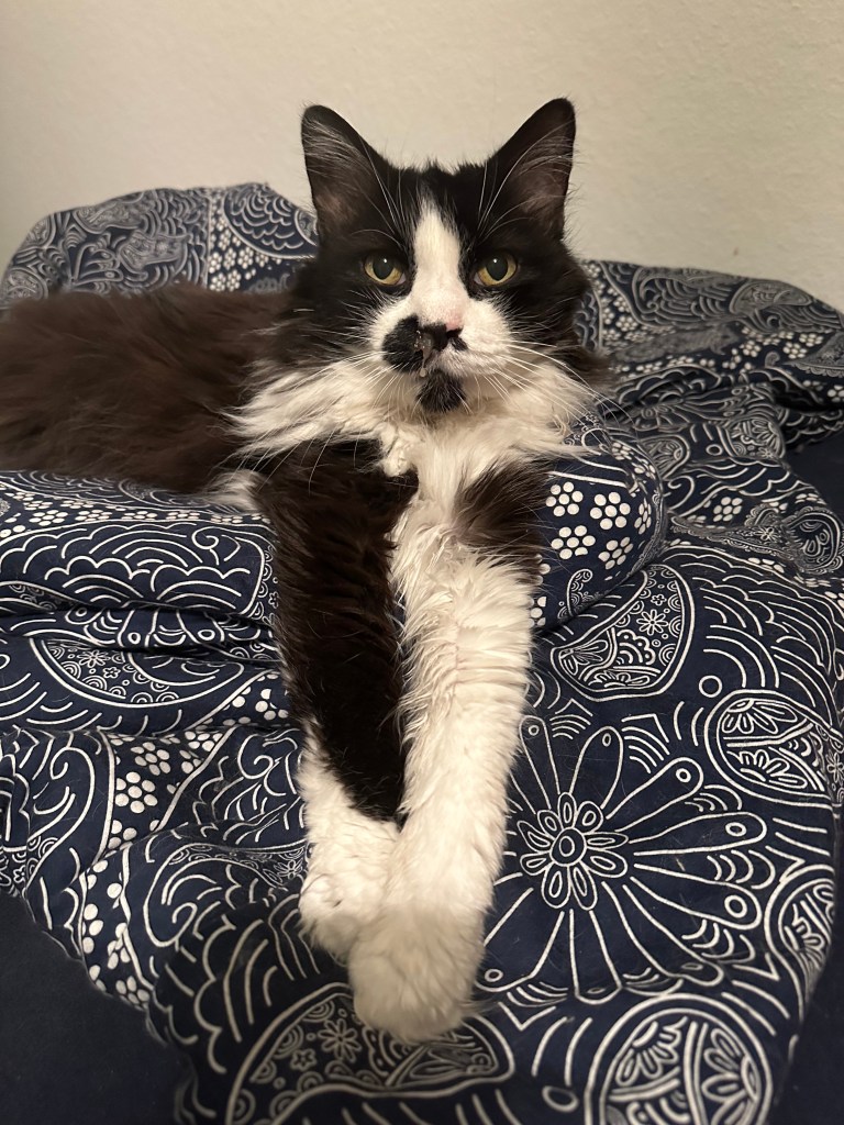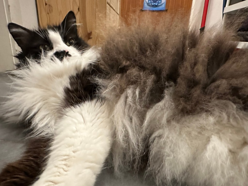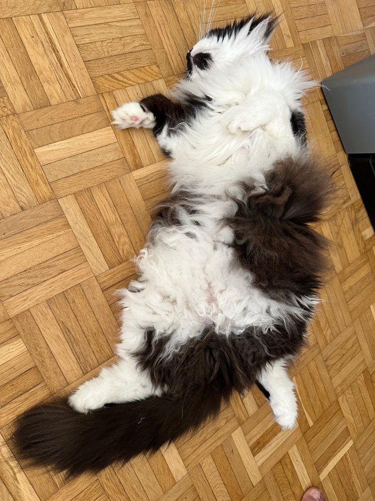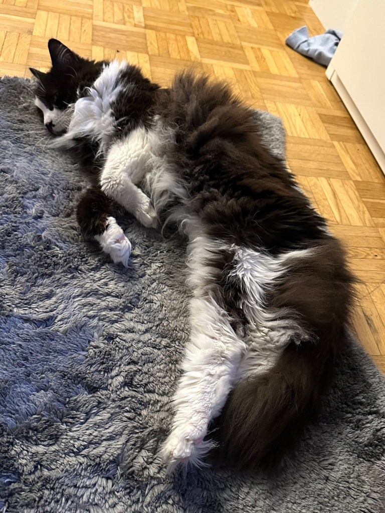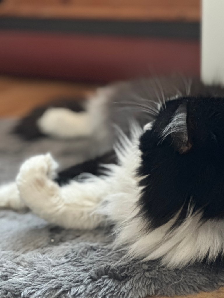 Und dann meine kleinen Streiche: die wilden fünf Minuten, durch die Wohnung rasen, kurz an der Wand stehen, gucken, als würde ich sagen „Ha! Habt ihr das gesehen?“ – und weiter, schneller, wilder, frecher. Mein Stuhl war mein Thron, mein Essensplatz mein Königreich. Ich habe euch deutlich gemacht: „Hier sitze ich, hier bekomme ich meinen Anteil!“ Mit Pfotenklopfen, mit Blick, mit Miauen – immer höflich, aber bestimmt.